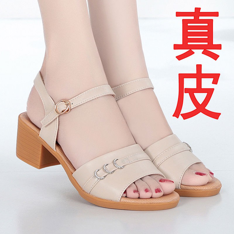 Kulit sandal wanita 2022 tumit tebal wanita baru musim Sumber : shopee.sg